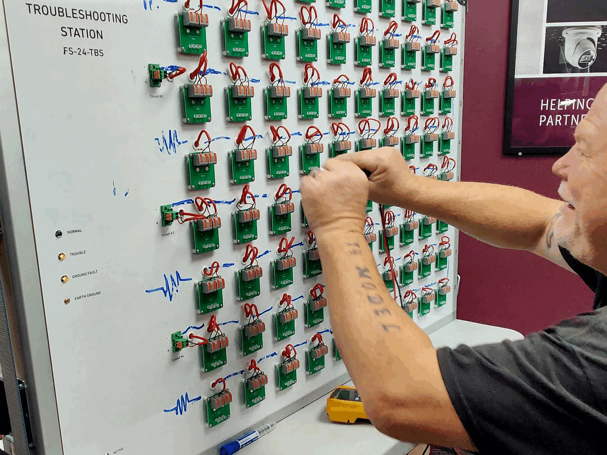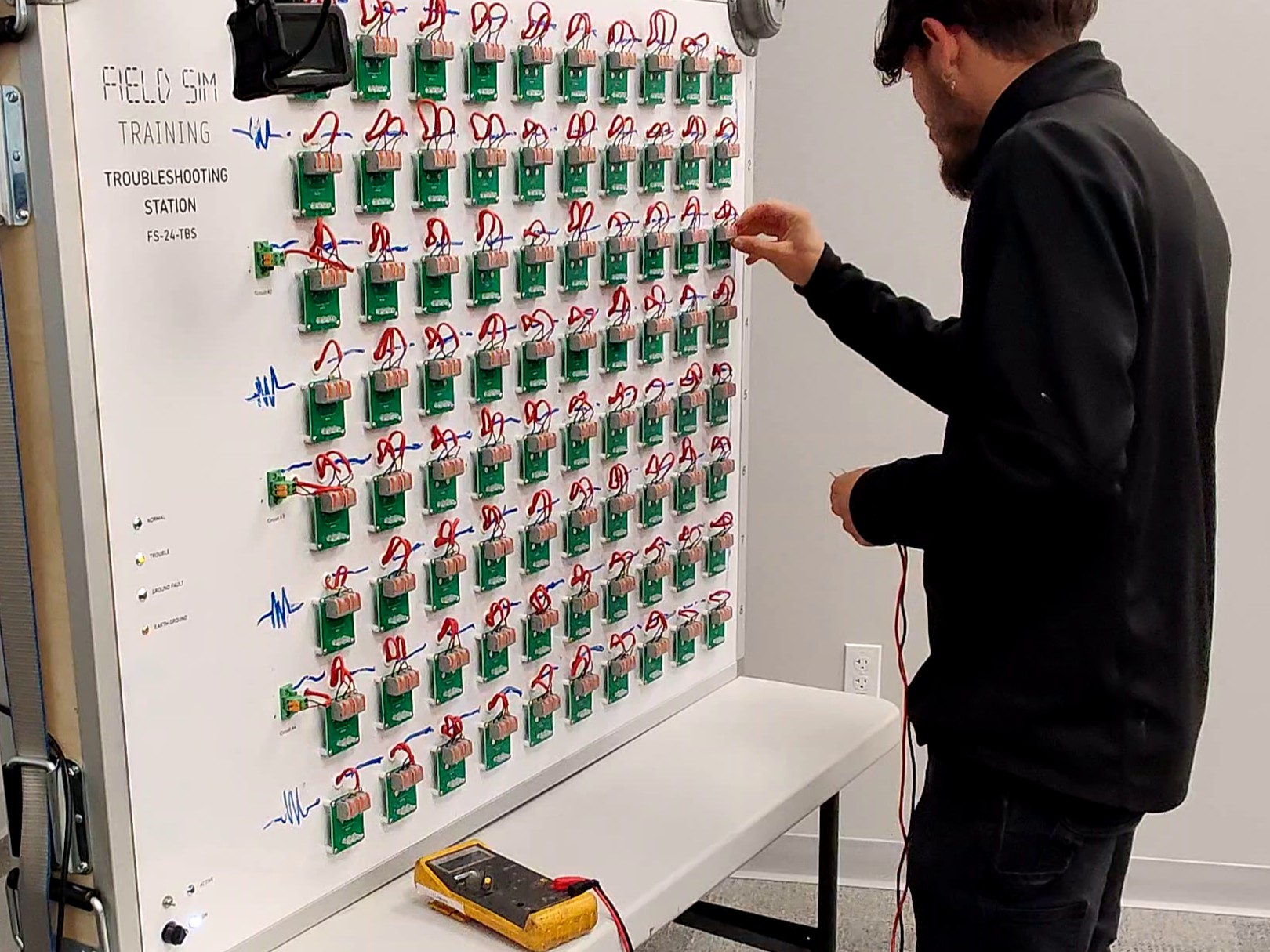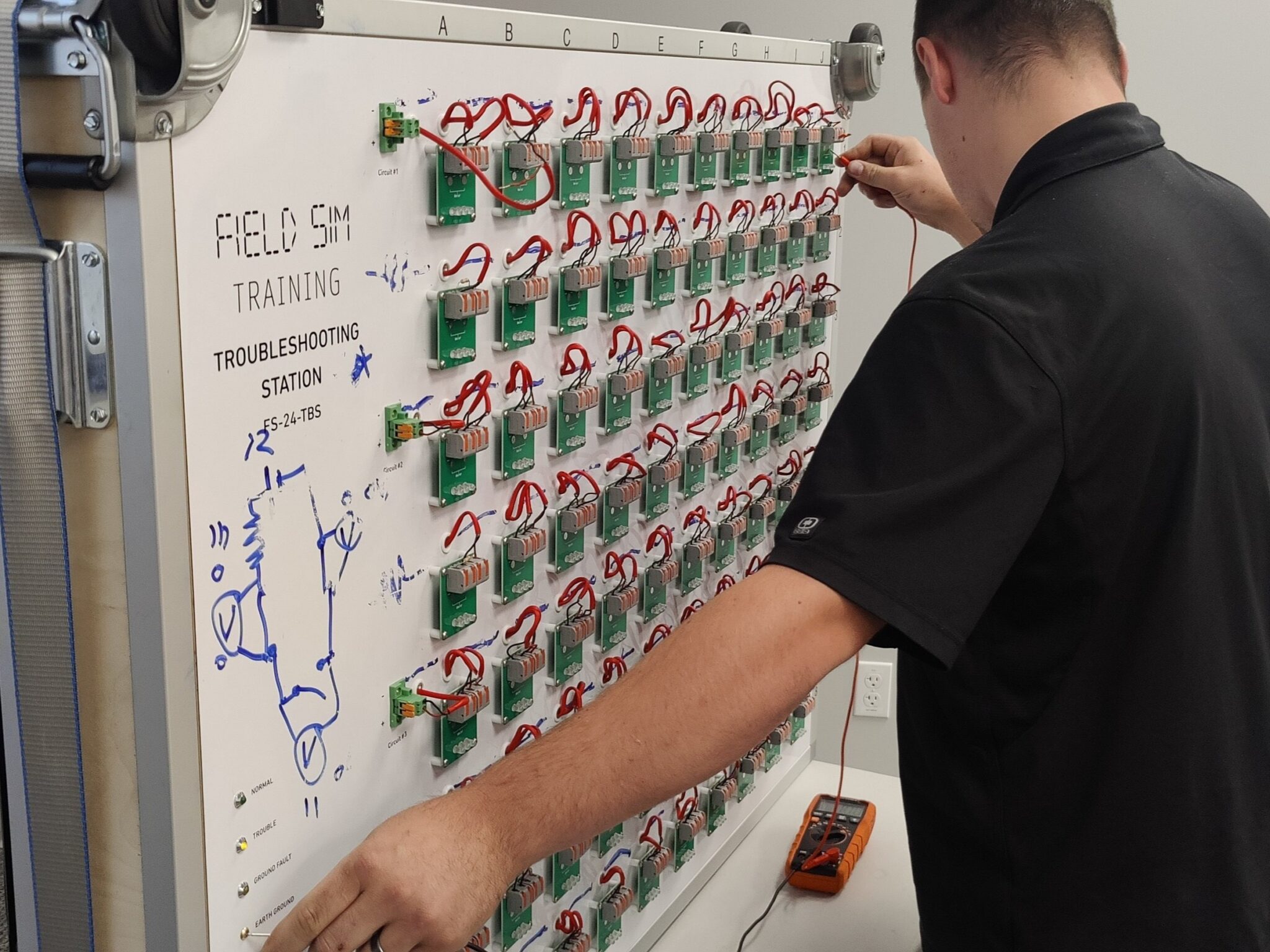 Most importantly, students will get repeated practice troubleshooting opens, shorts, ground faults, and reverse polarity on the FS-24-TBS Troubleshooting Station.