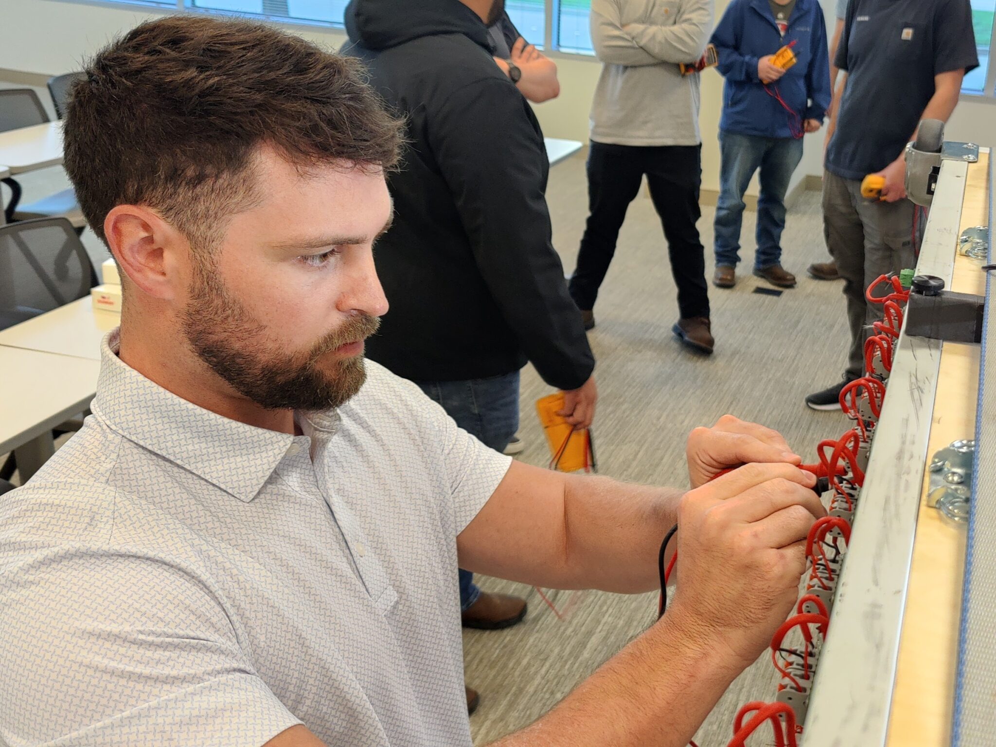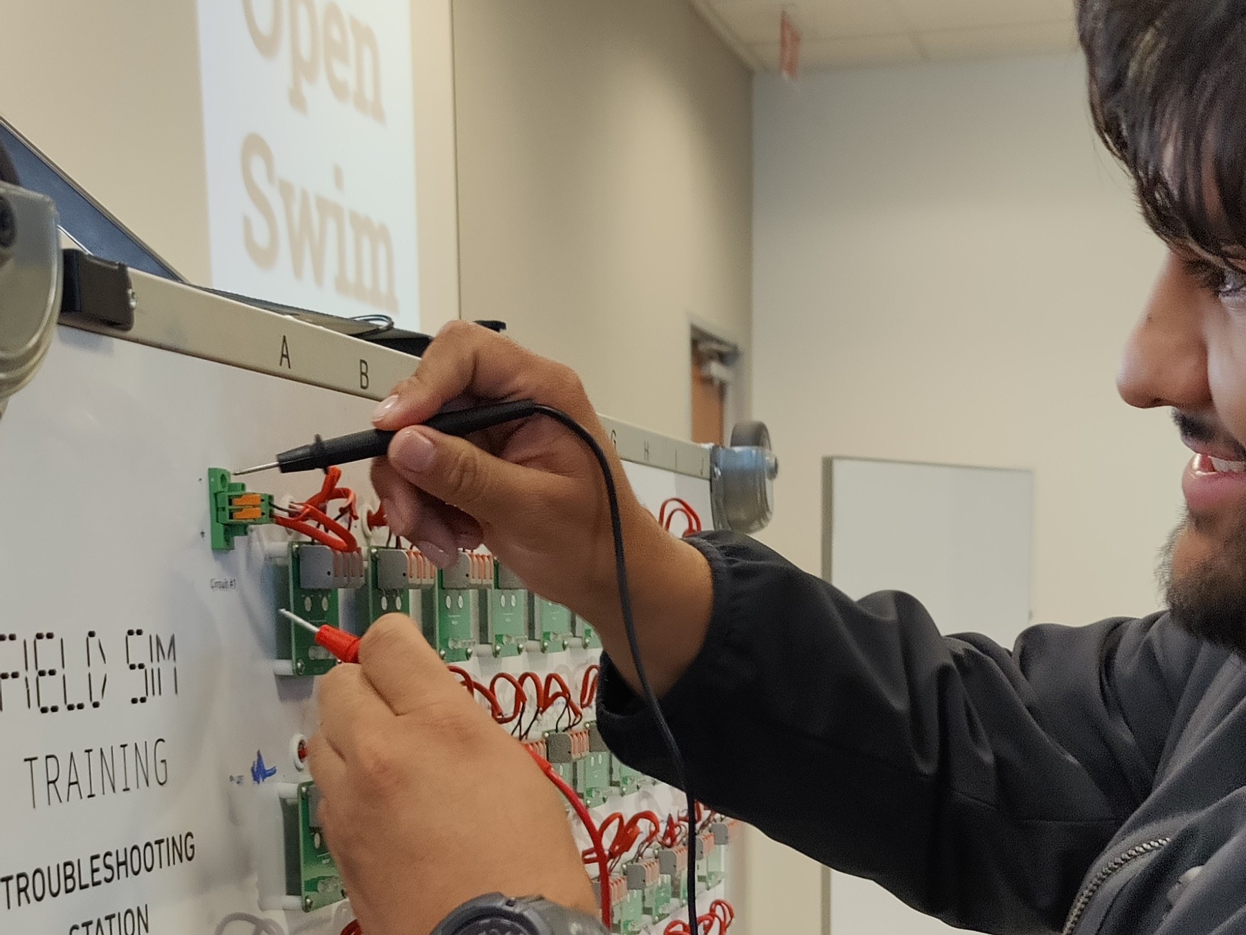 Each course is tailored to the audience. Automation and controls technicians learn how to troubleshoot 24 VDC and 24 VAC circuits, how to verify phase when connecting transformer secondaries in parallel, and how to measure 4-20 mA sensor current.